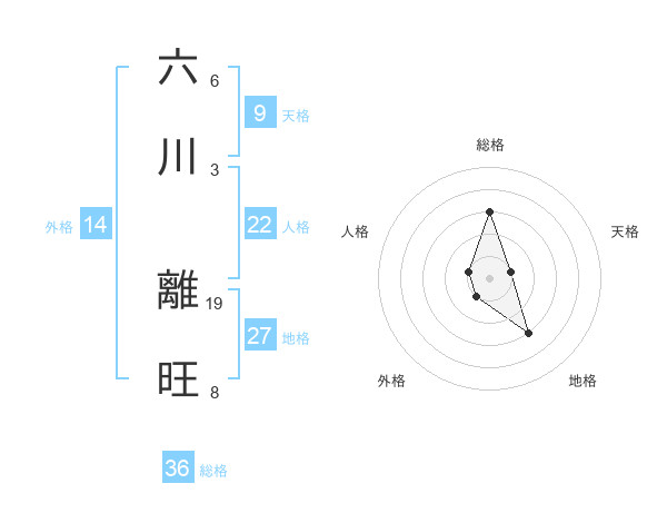 六川 離旺さんの外格は14画の1点!