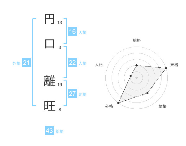 円口 離旺さんの天格は16画の5点!