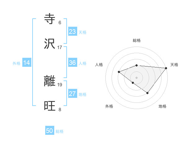 寺沢 離旺さんを姓名の画数から五運を鑑定