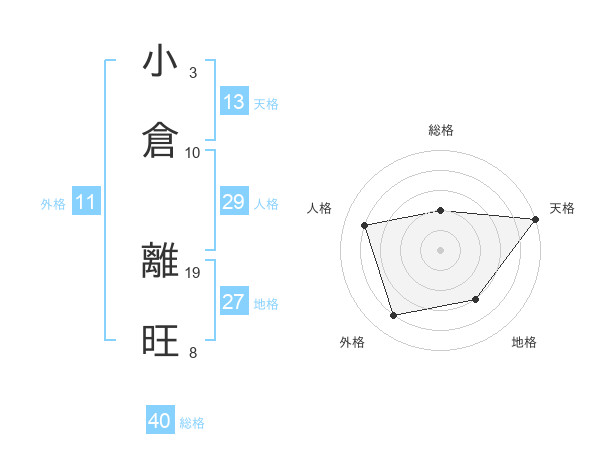 小倉 離旺さんを姓名の画数から五運を鑑定