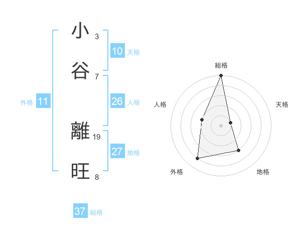 小谷 離旺さんを姓名の画数から五運を鑑定
