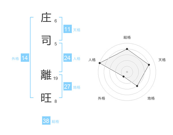 庄司 離旺さんを姓名の画数から五運を鑑定