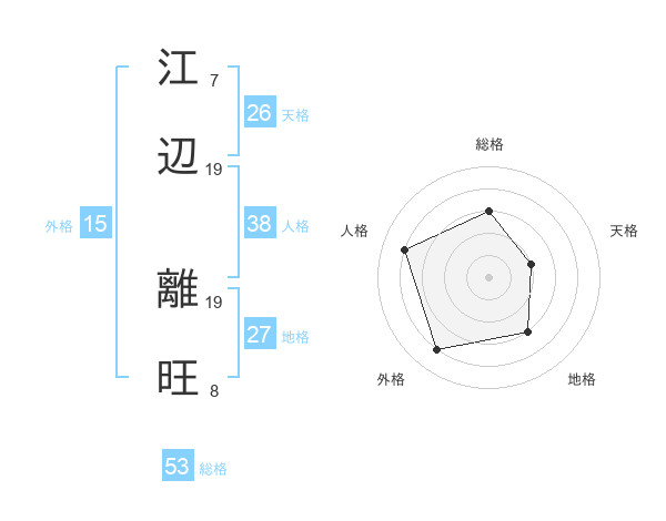 江辺 離旺さんを姓名の画数から五運を鑑定