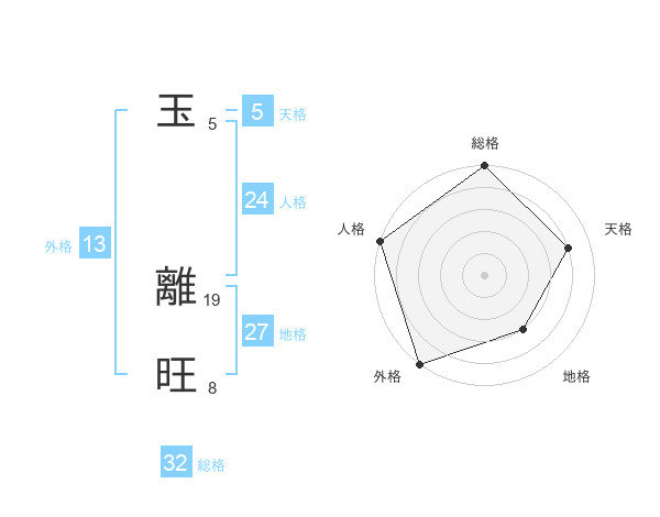 玉 離旺さんの総格は32画の5点!