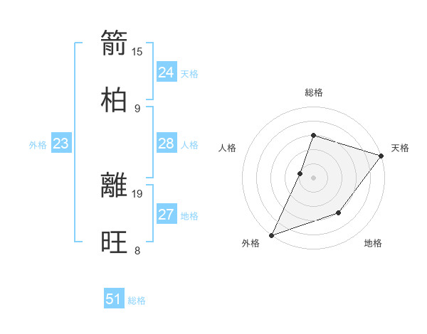 箭柏 離旺さんを姓名の画数から五運を鑑定