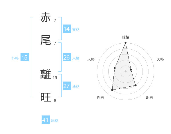 赤尾 離旺さんの総格は41画の5点!