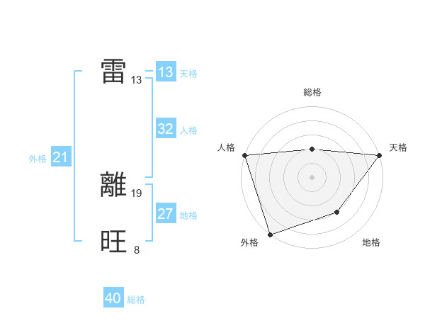 雷 離旺さんの天格は13画の5点!