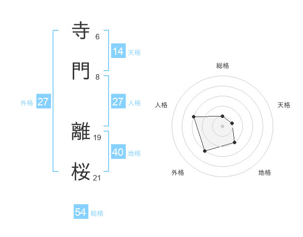 寺門 離桜さんを姓名の画数から五運を鑑定