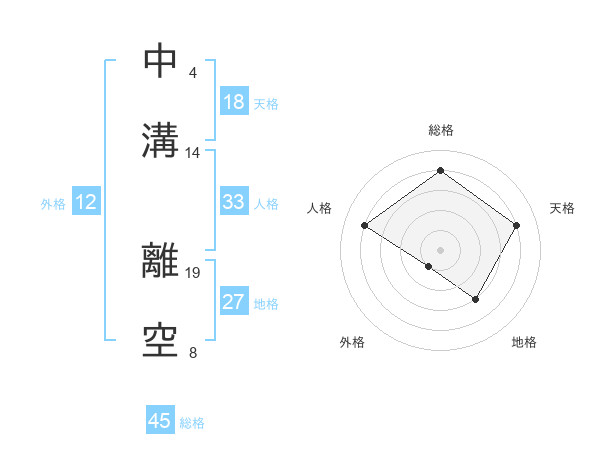 中溝 離空さんの総格は45画の4点!