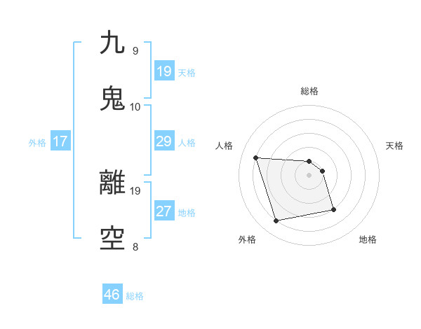 九鬼 離空さんの総格は46画の1点!