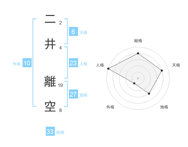 二井 離空さんの総格は33画の4点!