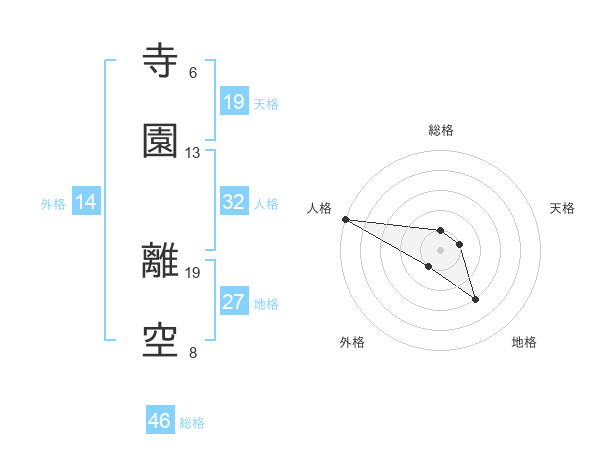 寺園 離空さんの総格は46画の1点!