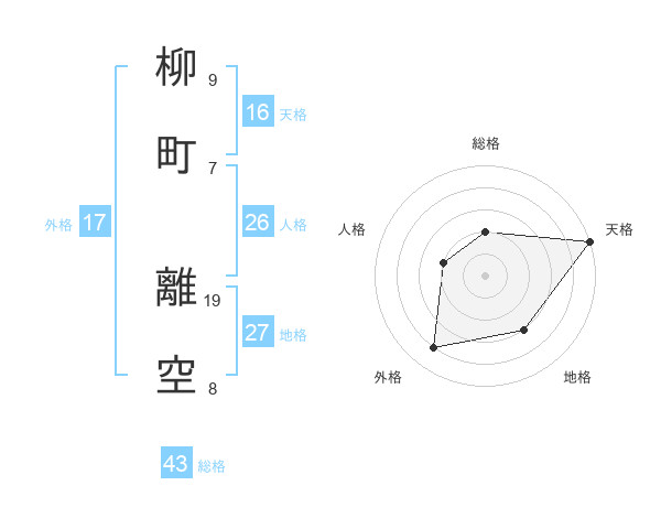 柳町 離空さんの外格は17画の4点!