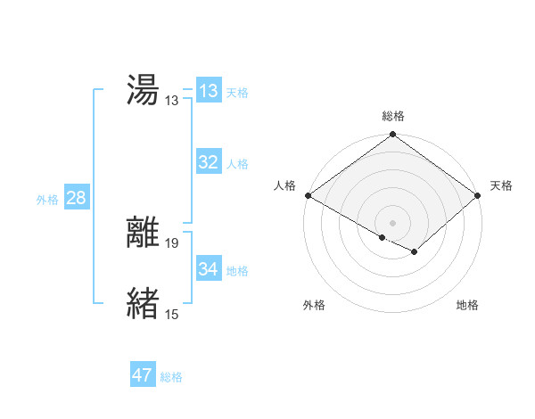 湯 離緒さんの総格は47画の5点!