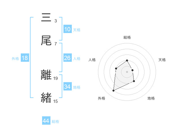 三尾 離緒さんを姓名の画数から五運を鑑定