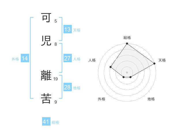 可児 離苦さんの総格は41画の5点!