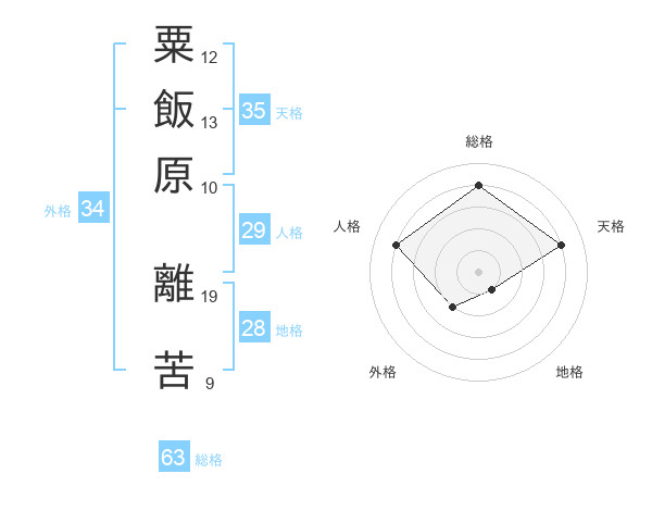 粟飯原 離苦さんを姓名の画数から五運を鑑定