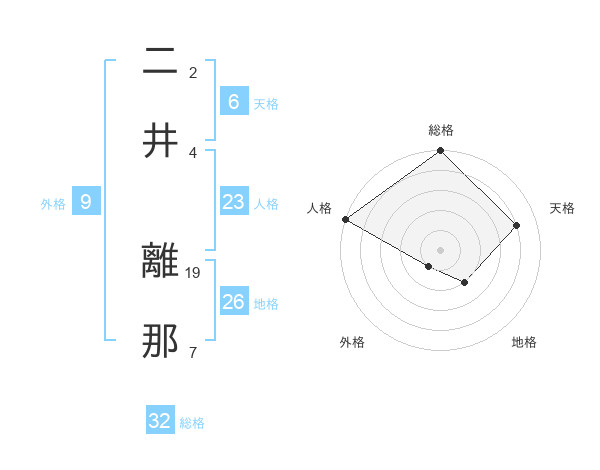 二井 離那さんの総格は32画の5点!