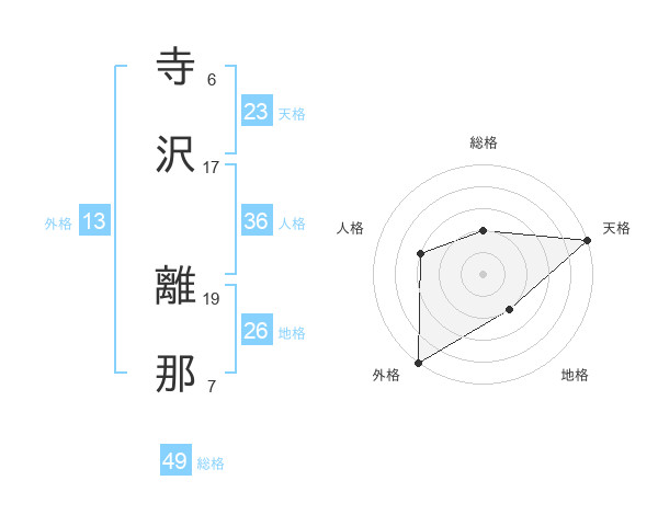 寺沢 離那さんを姓名の画数から五運を鑑定