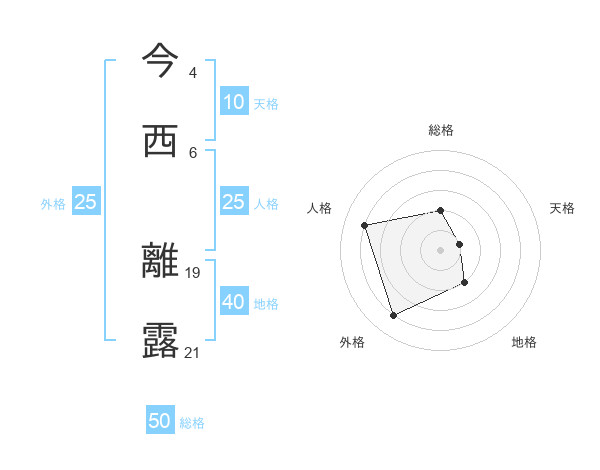 今西 離露さんの総格は50画の2点!