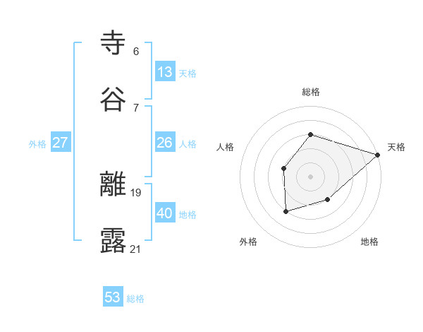 寺谷 離露さんの天格は13画の5点!