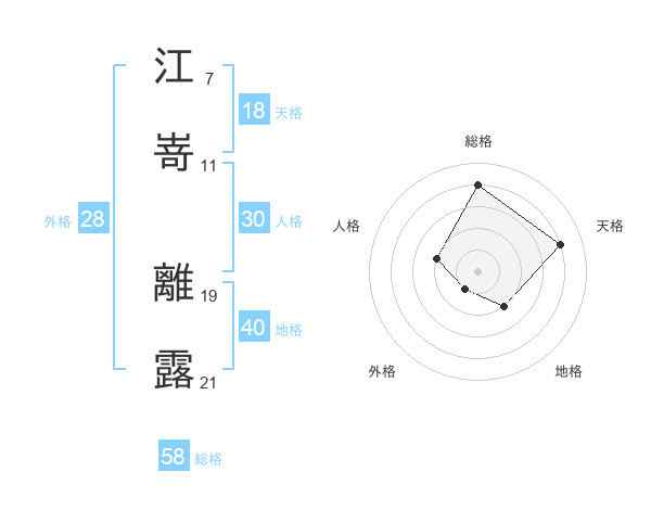 江嵜 離露さんの総格は58画の4点!