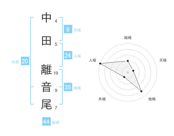 中田 離音尾さんの総格は44画の2点!