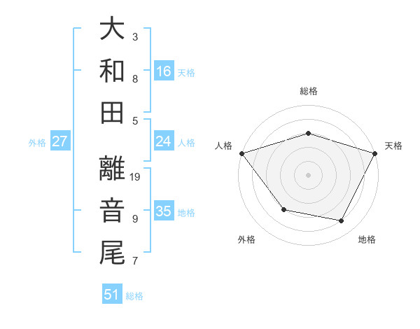 大和田 離音尾さんを姓名の画数から五運を鑑定