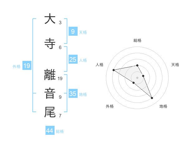 大寺 離音尾さんを姓名の画数から五運を鑑定