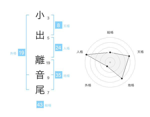 小出 離音尾さんを姓名の画数から五運を鑑定
