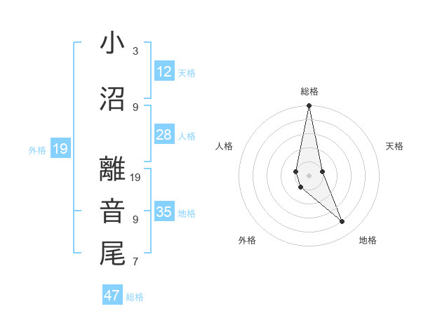 小沼 離音尾さんを姓名の画数から五運を鑑定