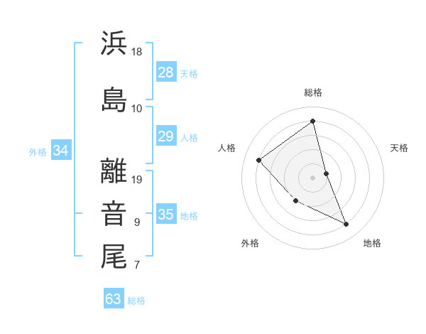 浜島 離音尾さんの総格は63画の4点