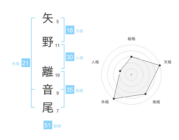 矢野 離音尾さんの総格は51画の3点!