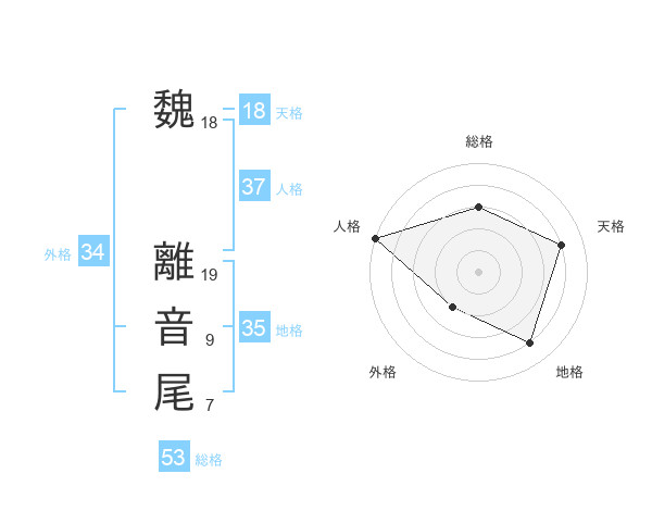 魏 離音尾さんを姓名の画数から五運を鑑定