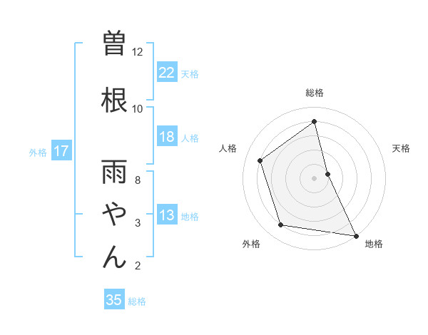 曽根 雨やんさんを姓名の画数から五運を鑑定