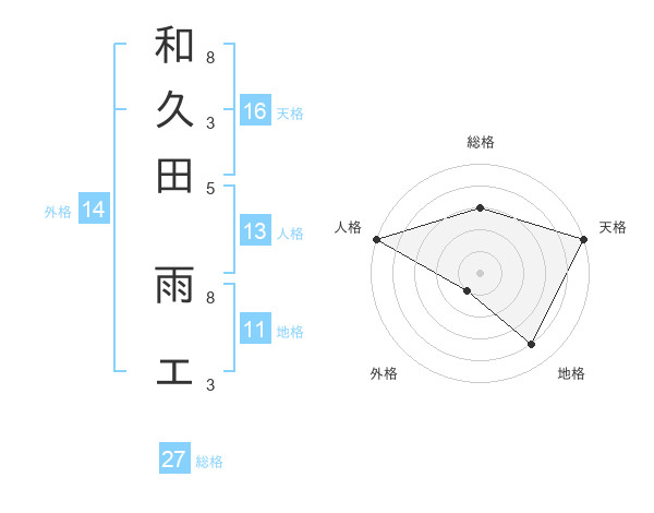 和久田 雨エさんの天格は16画の5点!