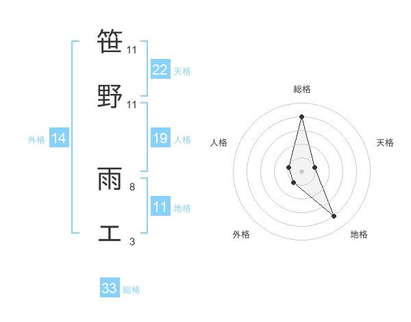 笹野 雨エさんを姓名の画数から五運を鑑定
