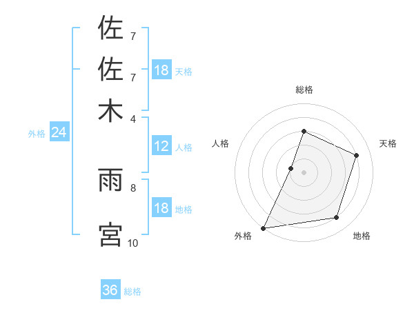 佐佐木 雨宮さんの外格は24画の5点!