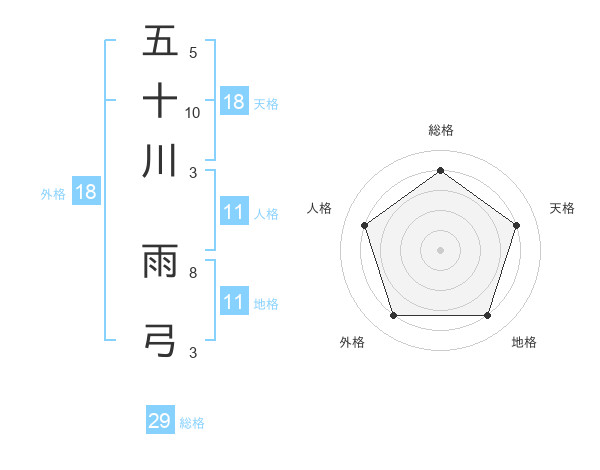 五十川 雨弓さんを姓名の画数から五運を鑑定