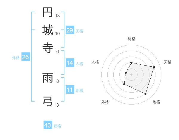 円城寺 雨弓さんを姓名の画数から五運を鑑定