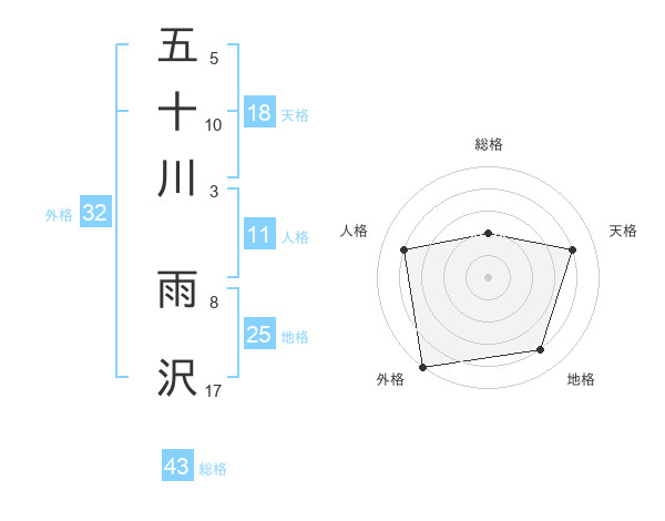 五十川 雨沢さんを姓名の画数から五運を鑑定