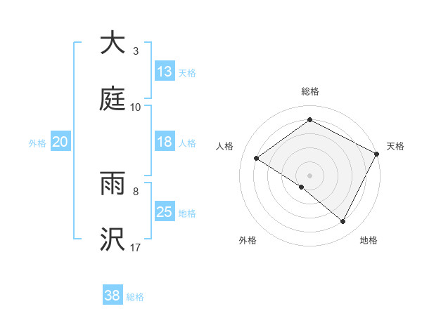 大庭 雨沢さんの総格は38画の4点!