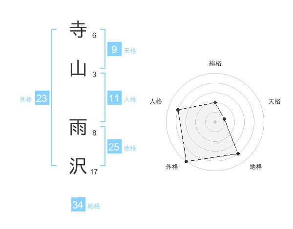 寺山 雨沢さんの総格は34画の2点!