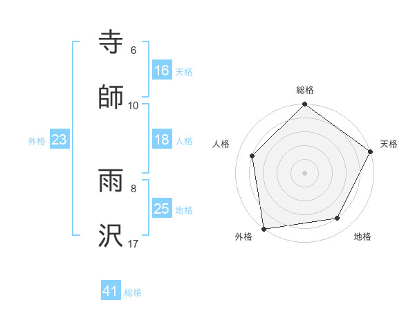 寺師 雨沢さんを姓名の画数から五運を鑑定