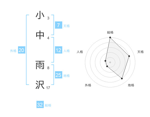 小中 雨沢さんの総格は32画の5点!