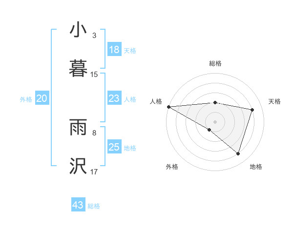 小暮 雨沢さんを姓名の画数から五運を鑑定