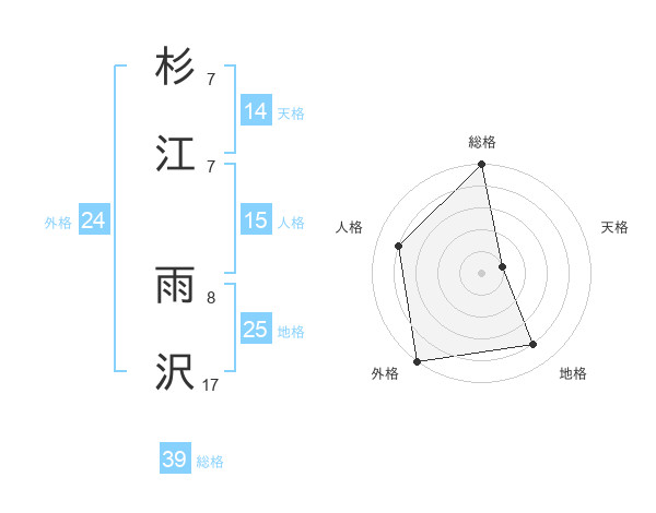 杉江 雨沢さんを姓名の画数から五運を鑑定