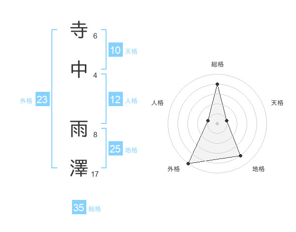 寺中 雨澤さんの総格は35画の4点!