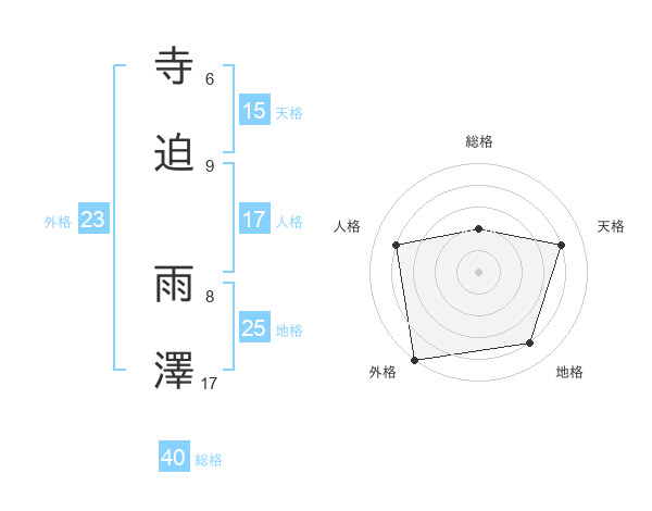 寺迫 雨澤さんの外格は23画の5点!
