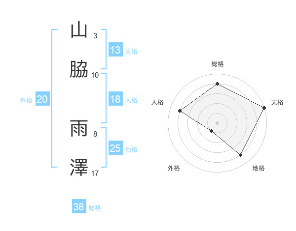 山脇 雨澤さんを姓名の画数から五運を鑑定